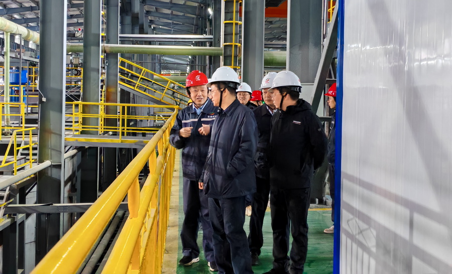 楊洪峰一行實地走訪了宏源公司生產(chǎn)調(diào)度控制室、生產(chǎn)車間及項目現(xiàn)場,詳細了解釩生產(chǎn)工藝、產(chǎn)品精深加工延伸、產(chǎn)業(yè)鏈發(fā)展規(guī)劃、環(huán)保設(shè)施運行及安全生產(chǎn)管理等情況。在聽取宏源公司負責(zé)人關(guān)于釩產(chǎn)業(yè)鏈項目的發(fā)展規(guī)劃及有關(guān)問題的匯報后,楊洪峰指出,海利集團作為湖南省的釩產(chǎn)業(yè)鏈鏈主企業(yè),在推進智能化、數(shù)字化提質(zhì)升級及資源綜合利用方面成績顯著,下一步應(yīng)加速推進下游高科技產(chǎn)品研發(fā)進程,重點聚焦于廢渣循環(huán)利用領(lǐng)域,通過技術(shù)創(chuàng)新與產(chǎn)業(yè)協(xié)同實現(xiàn)資源循環(huán)利用,提高企業(yè)經(jīng)濟效益,推動環(huán)境保護可持續(xù)發(fā)展。他強調(diào),州縣各級各部門要進一步優(yōu)化營商環(huán)境,落實惠企政策,為企業(yè)發(fā)展創(chuàng)造良好條件。他鼓勵宏源公司搶抓新能源產(chǎn)業(yè)發(fā)展機遇,加強與科研機構(gòu)合作,推動全釩液流電池等前沿技術(shù)研發(fā)應(yīng)用,努力打造全省釩產(chǎn)業(yè)標桿企業(yè),為湘西州高質(zhì)量發(fā)展注入新動能。